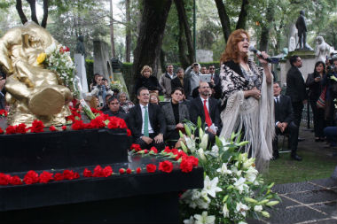 Canciones como 'Madrid', interpretada por Olga María Ramos, y 'María Bonita' por Natalia Lafourcade, se escucharon en el panteón donde yacen los restos del también llamado 'Flaco de Oro'.